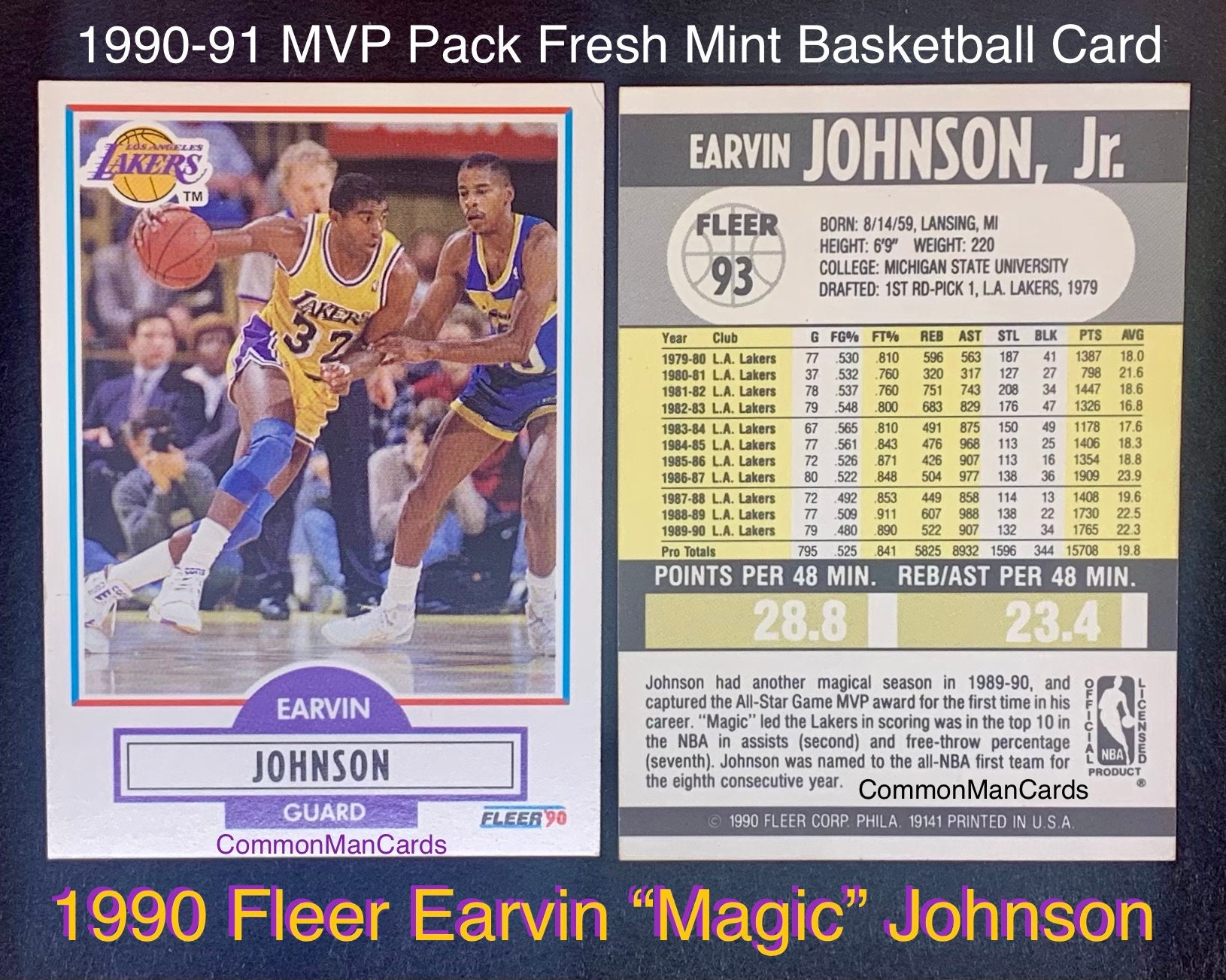 1990 91 Fleer Earvin Magic Johnson Basketball Etsy